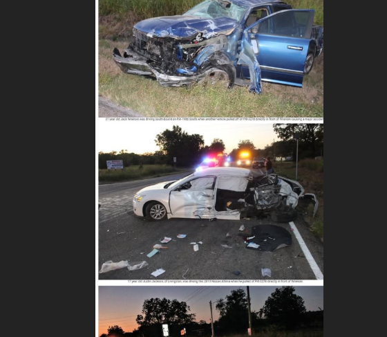 According to authorities, the accident involved a blue 2010 Dodge pickup truck driven by 31-year-old Jack Wilenski of Splendora, and a white 2013 Nissan Altima operated by 17-year-old Justin Edward Jackson of Livingston. Wilenski was traveling southbound on FM-1988 South as Jackson pulled onto FM-1988 from FM-3278.